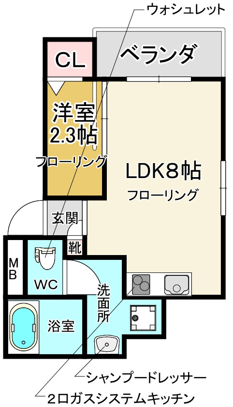 | 設備 | セパレート、オートロック、TVモニターホン、システムキッチン、シャンプードレッサー、独立洗面台、ウォシュレット、ガスコンロ、宅配BOX、クローゼット、エアコン | ||